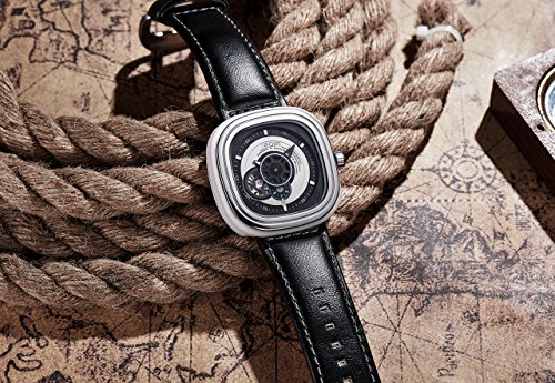 폭약24mm의 블랙의 가죽 밴드에 두께 약13mm가로 세로와도(모두) 약34mm의 스퀘어 케이스