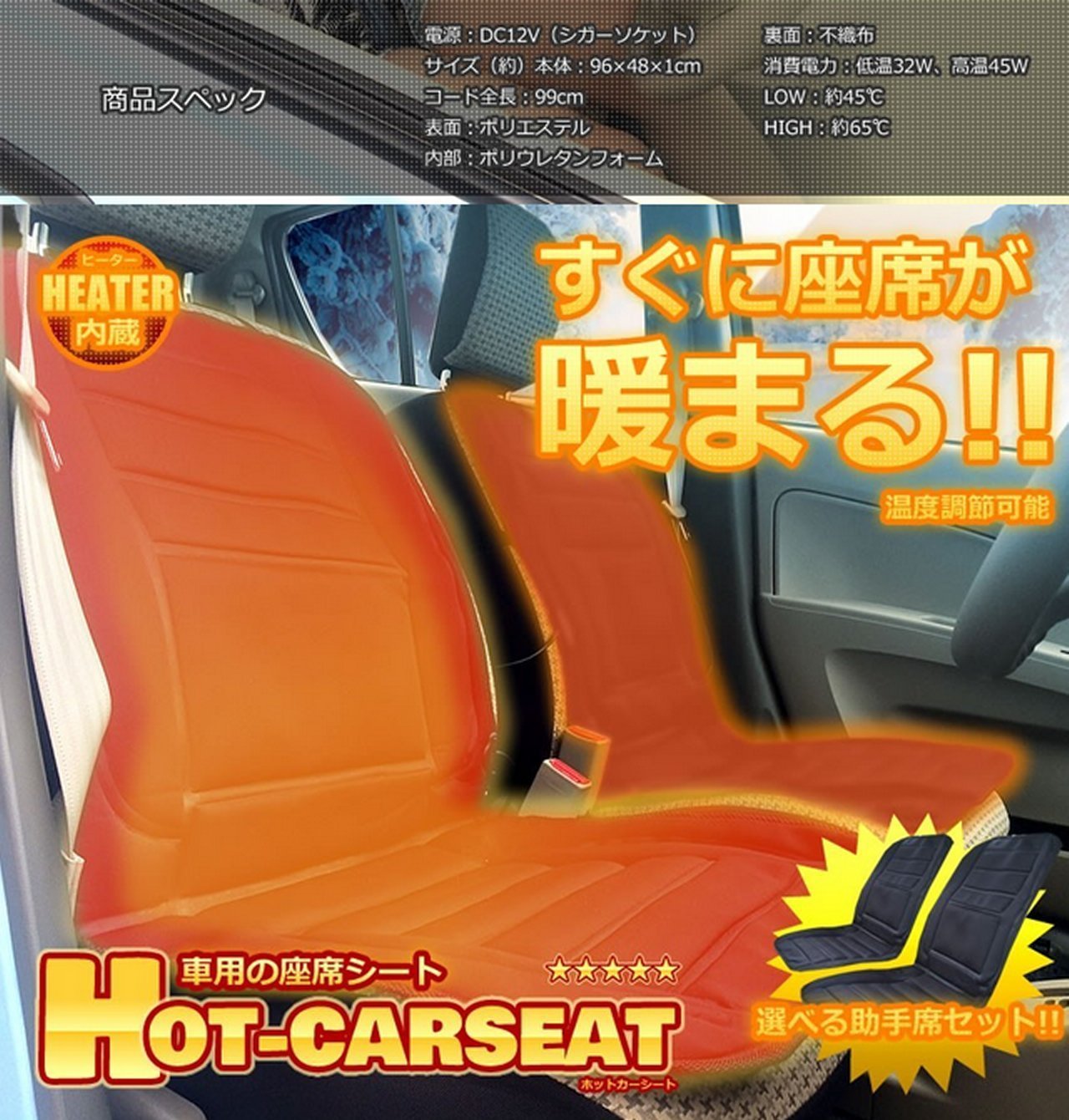 COM-SHOT [2 levels of adjustment] hot car seat 12V heater built-in [immediately seat warms up] MI-HT-SEAT-1