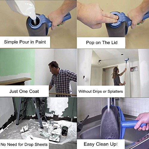 - Save the time, money and mess of traditional paint rollers. No prep time, NO drop sheets, NO tape masking. Just Pour and Paint to revitalize any wall or surface in just a few minutes.