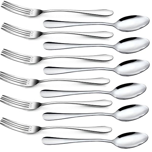 Glittermall Pack of 12pcs 6'' Stainless Steel Cocktail Tasting Appetizer Cake Fruit Forks and Tea Dinner Server Spoon Kitchen Accessory Wedding Party (6 forks 6'' and 6 spoons 6'')