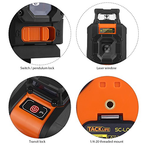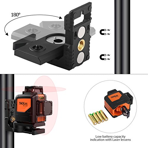 - ▲WHAT YOU GET - Tacklife SC-L04 Cross Line Laser; Magnetic Pivoting Base; Carrier Case; AA Batteries; English User's Manual; Warranty Card; 24 Months Warranty