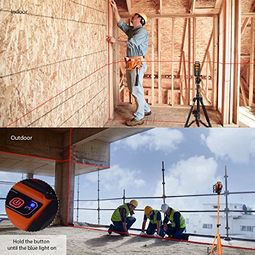 - ▲MULTIFUNCTIONAL MODE - One button operation makes you easy to project lines together or independently (cross line, vertical and 360-degree horizontal); Features smart pendulum system, pendulum locks when switched off; Pendulum unlocks, self-leveling and indicating out-of-level condition, also press the top button can start manual mode, letting you project lines in any position or angle