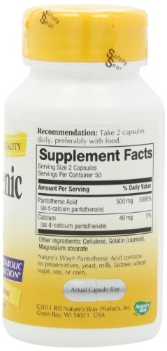 -. Title : Nature's Way Pantothenic Acid, Capsules, 250 mg, 100-Count
