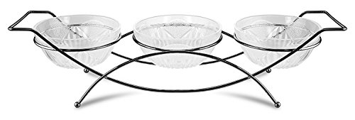 [Product Information]- 4 piece set includes: (1) chic metal chrome caddy stand and (3) glass condiment bowls