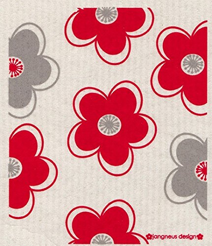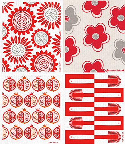 Swedish Dishcloth - (NK) Set of 4 RED Sunflower, Pomegranate, Flowers +