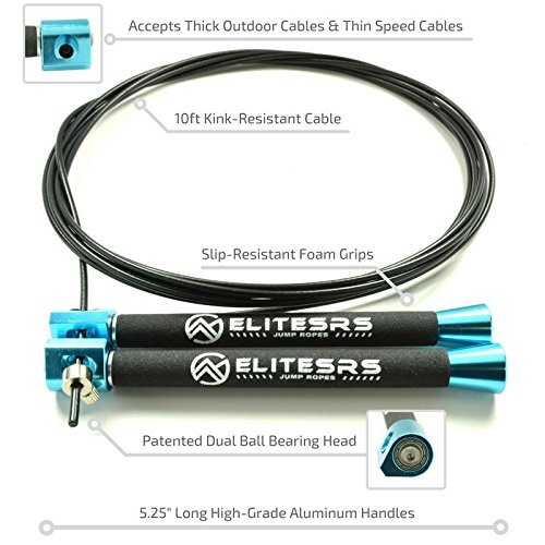 ? Dual-ball bearing 4oz aluminum handles achieve 6-7 jumps a second ? Designed by a national champion speed jumper to improve your double under scores ? Thin handles with foam grips allow for fine control while turning the rope (and sweating). ? 2 year warranty on machine-cut aluminum handles ? Usage: We recommend using this rope indoors, as the cable will wear out on rough surfaces. If jumping outdoors, use a jump rope mat or purchase with a 3mm outdoor rated cable, which will last longer on abrasive surfaces.