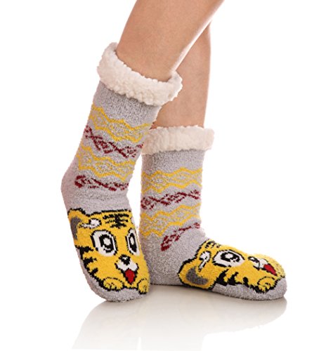 -. Feature : ULTRA-SOFT MATERIAL -- Made of Polyester& Cotton. This slipper socks features fuzzy exterior and fleecy cotton lining, warm your feet all day. A pair of indispensible slipper socks, perfect for all women/teen girls/girls. / Non-slid Soles :Non-slip grips on soles prevent slips and falls on smooth floors. The form-fitting design provides comfort at every step.A considerate item for cold days, you needn't suffer the freezing floor anymore. / Warm House Socks - Great for lounging around your home, especially on cold mornings! Regular socks do not prevent your feet from the cold, but our fleece lined socks keep your feet toasty day and night. Once you put on these thick soft fuzzy slippers, you will never want to take them off. Super warm and cozy. Also, you can wear them while watching TV on the sofa or sleeping, etc. They will keep your feet nice and warm! / Size: US WOMEN SHOE SIZE 5-10. The soft lining is perfect to kept your feet snug and warm and they are thick enough for continued warmth while you wear them. / 6 Styles Cute Cartoon Animal for Your Choice Choose your favorite Cartoon Animal and be ready for the holiday season!