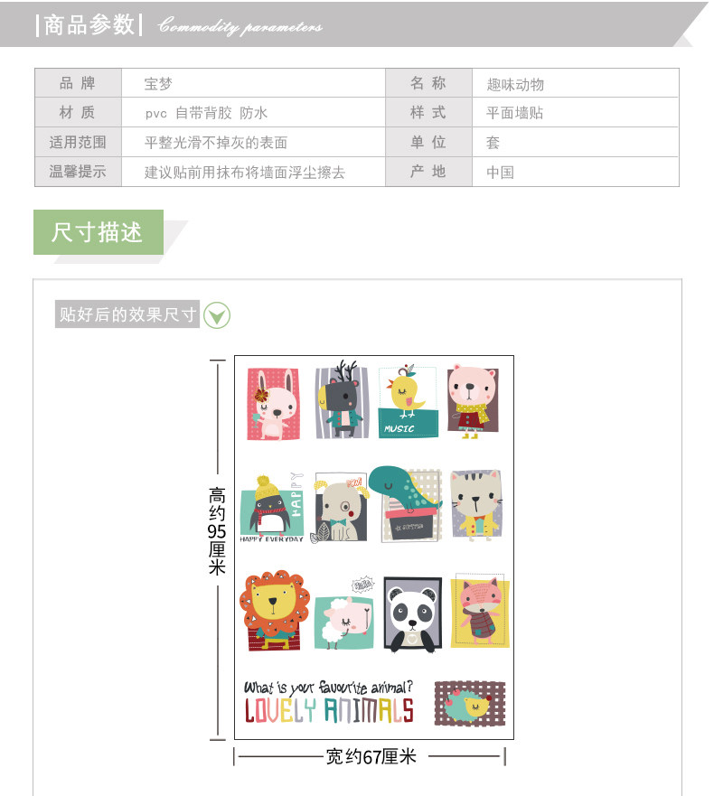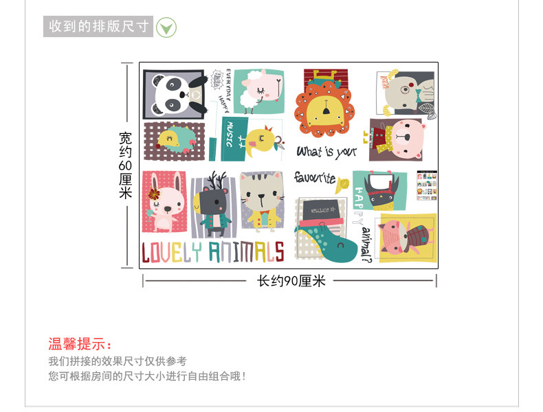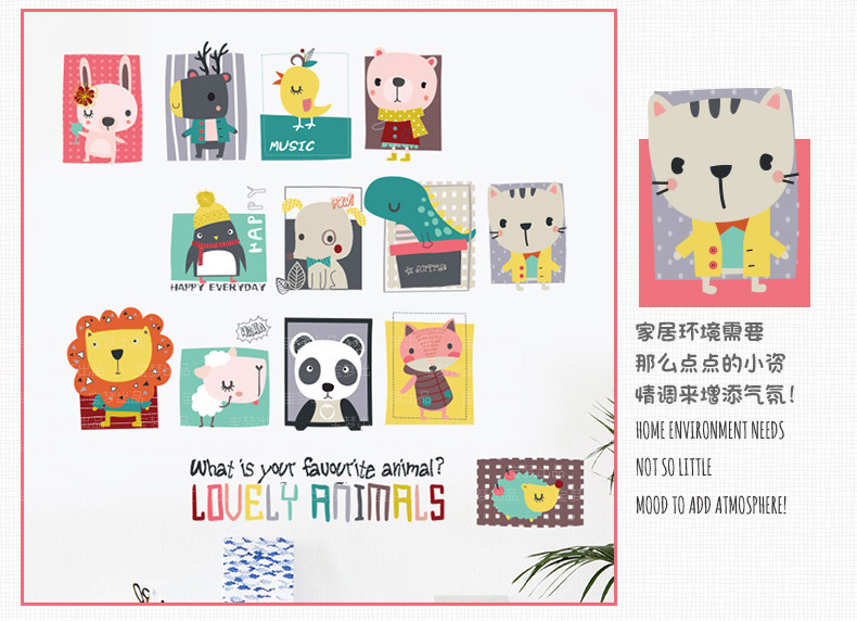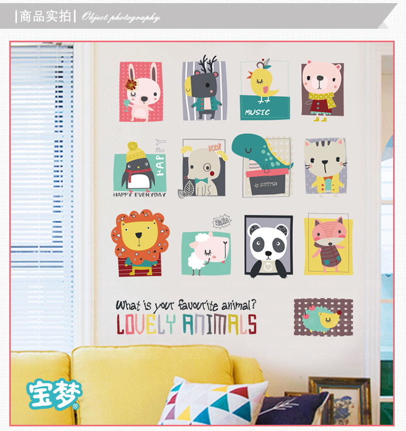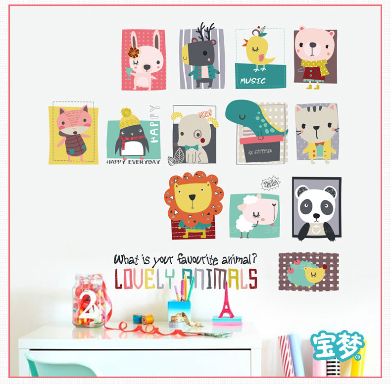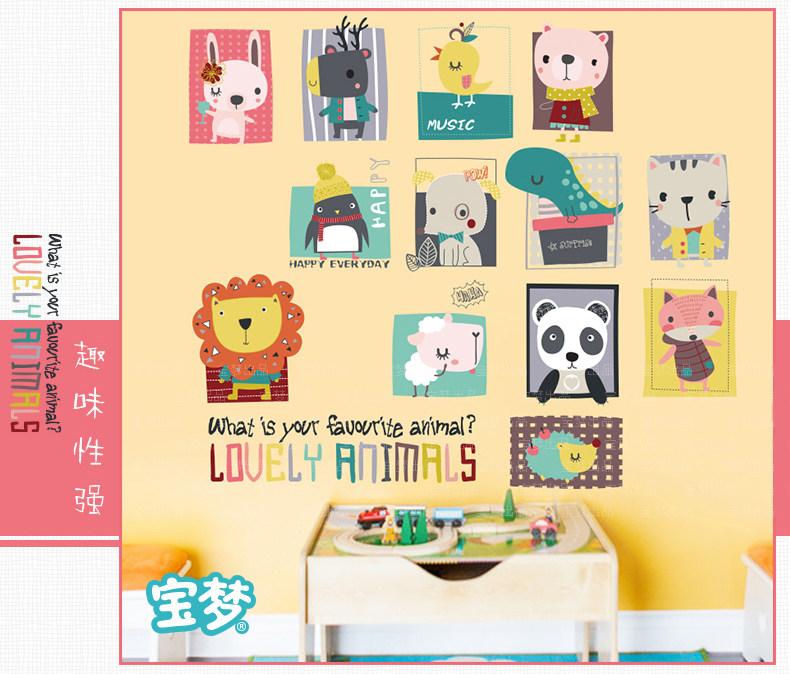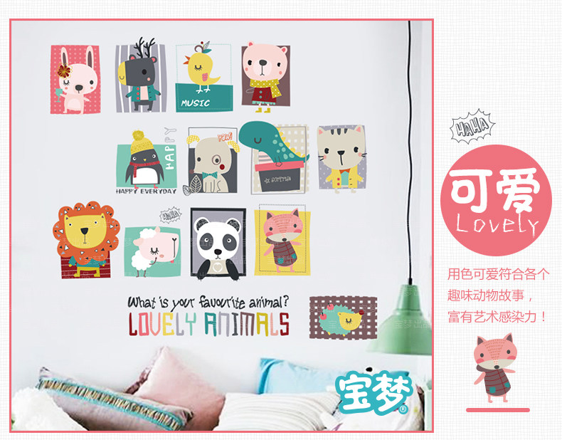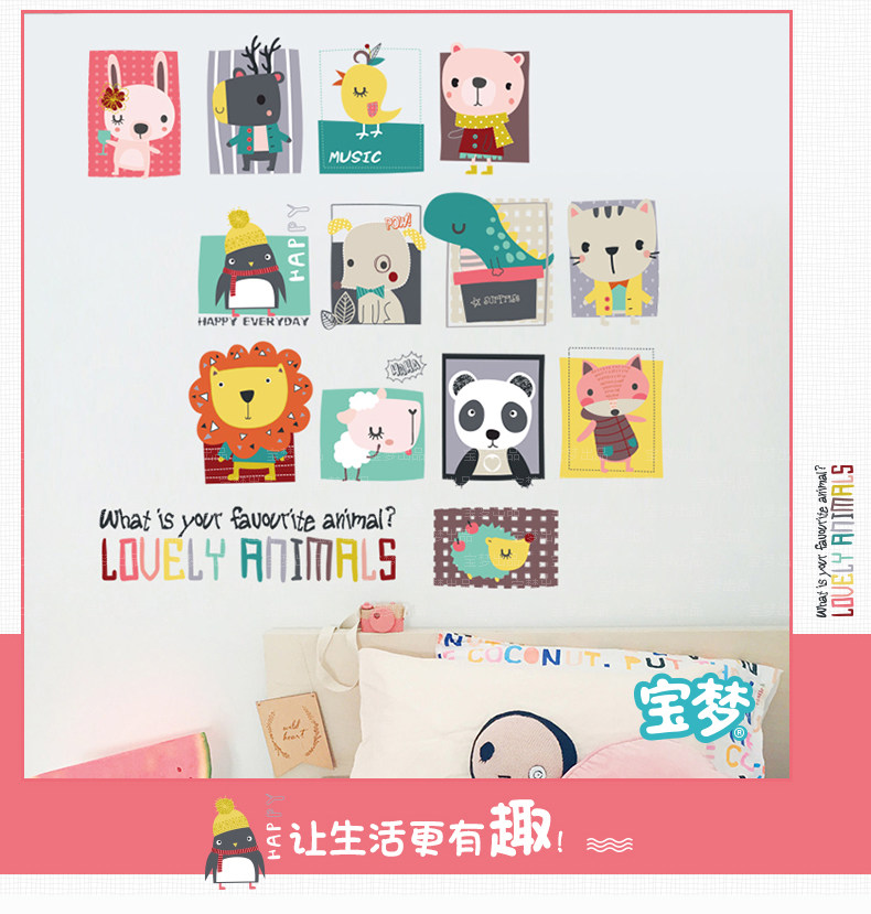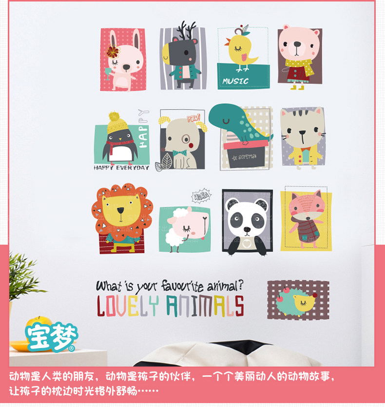 卡通儿童房间宝宝卧室装饰画可爱动物墙贴纸创意幼儿园背景墙贴画