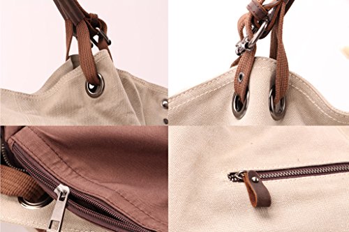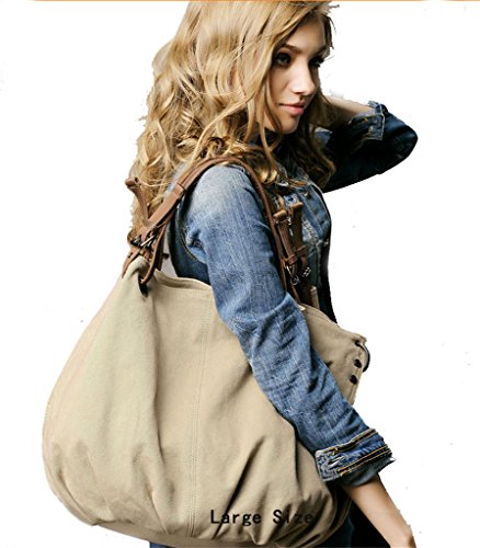 -. Title : Tom Clovers Canvas Oversized Hobo Top Handle Genuine Leather Tote Handbag Shoulder Weekender Crossbody Bag for Women
