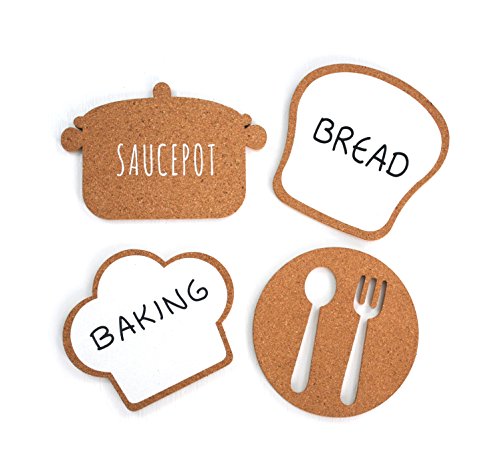Yizi Zakka Large Cork Trivet (7+ inch), Set of 4, Cute Kitchenware Shape Design, Extra Large Cork Coaster, Heat Resistant Pot Mat, Placemat for Hot Pots and Pans, Non-Slip Table Pad, Drink Coaster