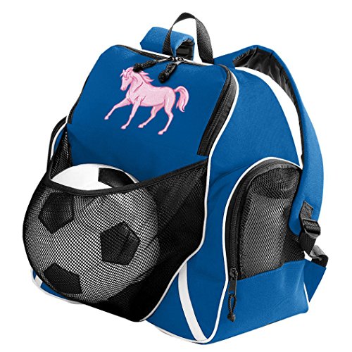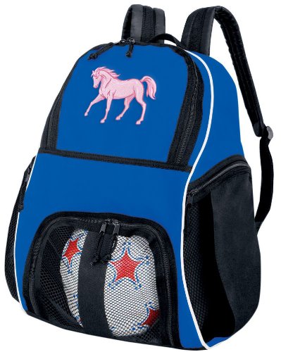 Studio : Broad Bay Publisher : Broad Bay Binding : Misc. Product Description This well made Cute Pink Horse ball backpack is the perfect solution for soccer or basketball practice. Made of heavy duty 600D polyester with soft backing, the mesh paneled interior ball compartment allows you to quickly and easily zip your ball right in and keep it separate from the main compartment. The main compartment measures approximately 10in x 13in x 9in after the ball is inside and still has plenty of room for your shin guards, cleats, and a change of clothes. Two zippered side compartments with mesh panels allow you to keep your water bottle in one and your keys and cell phone in the other. Backpack features adjustable padded shoulder straps, hand strap and dual zipper pulls on both the main compartment and the ball compartment. The base is 16in x 8.5 in not including pockets, and the backpack measures 18" high. 0