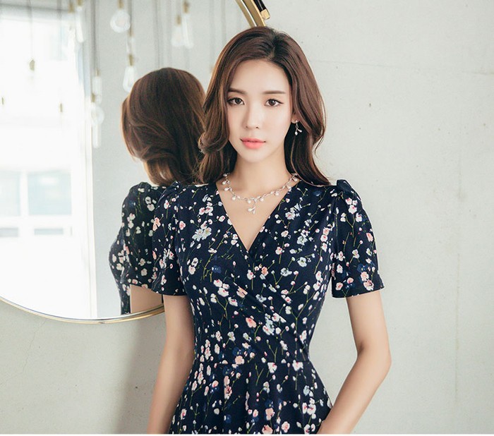商品名:ワンピース カシュクールワンピ 花柄 半袖 膝丈