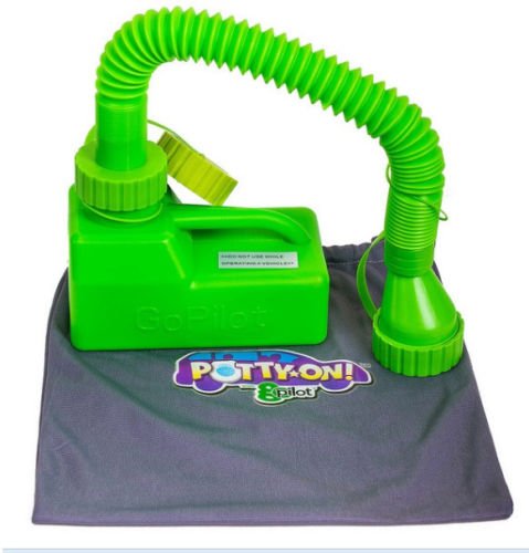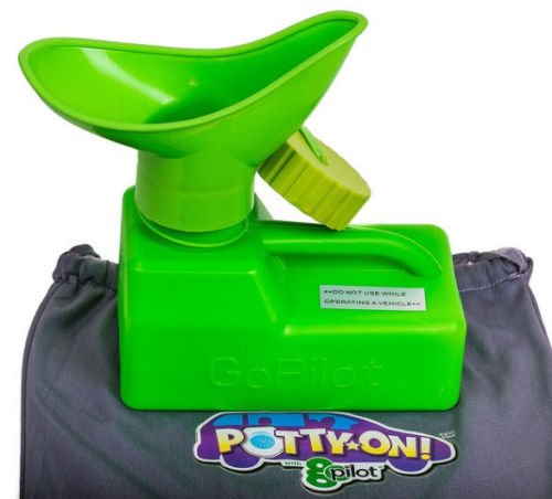 - Feature : Ever try to take a family road trip with children? Ever try to run errands with a potty training child? If you answered YES to either of these you NEED a Potty On! portable urinal system and NEVER worry when you hear "I hafta pee!" ever again! / NOTE: DUE TO THE NATURE OF THE PRODUCT, NO RETURNS ARE ACCEPTED / The Potty On! is made by the same people who brought us The GoPilot Portable Urinal and is a lifesaver to parents and children! It is a bright neon green color that is gender neutral and consists of a quart sized tank, an accordion style tube (for boys) and also a female adapter for girls to use. The tube is adjustable so boys have an easier time angling it 'just right' to prevent leakage or overflow. The female adapter can twist onto the tank or the tube! The Potty On! is ideal for sitting, laying, or standing!