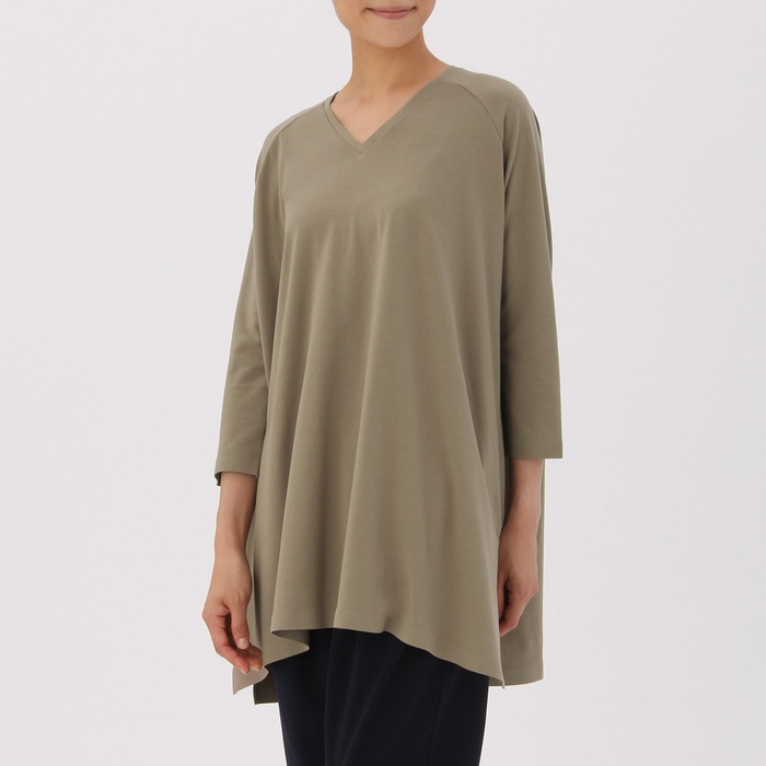 Muji 면혼스트레치V넥7 분수튜닉 부인ONE SIZE카키 베이지 편의점 수취가