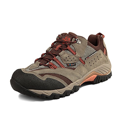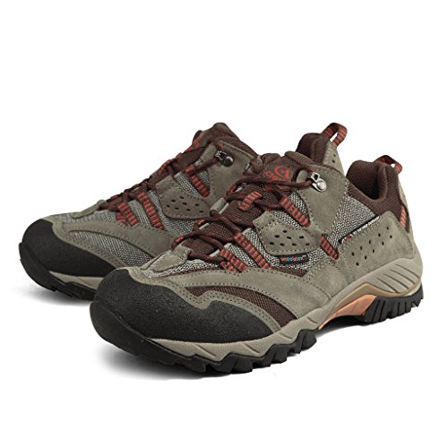 Clorts Men's Suede Leather Waterproof Hiking Shoe Outdoor Backpacking Trekking Shoes Brown HKL-829A US7