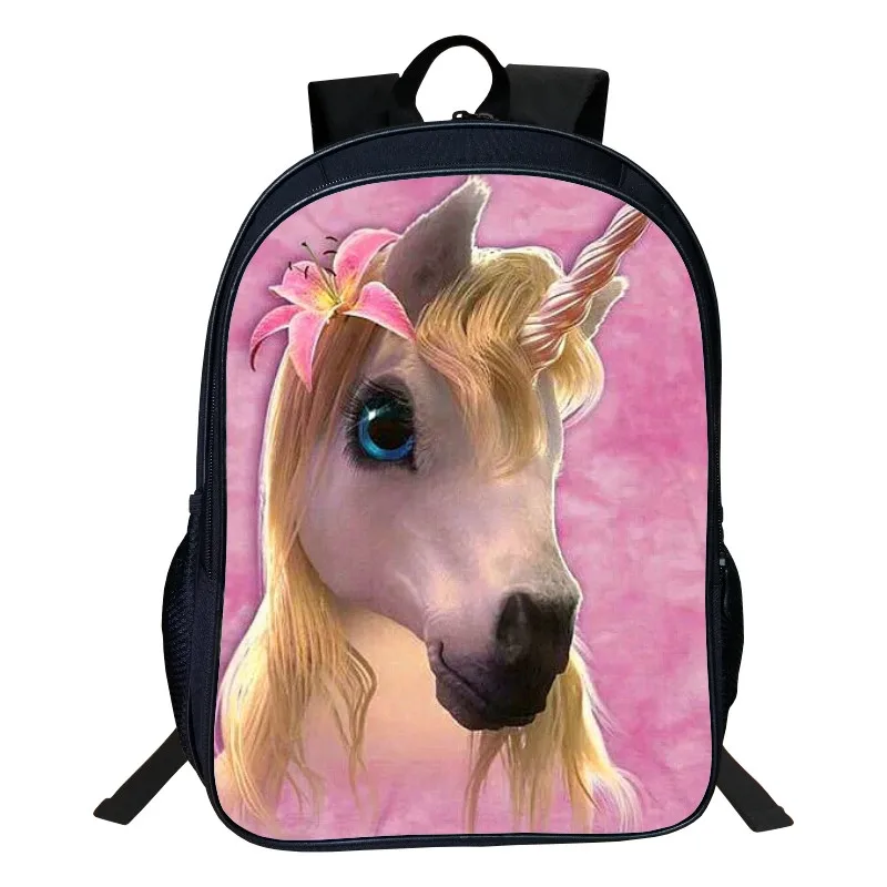 Hot Polyester 16-Inches Printing Animal Horse 3D Unicorn Women Schoolbag Backpacks for Teenage Girl School Bags Children Bookbag