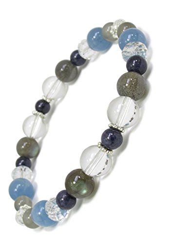 -. Feature : こちらの商品はシリコンゴムを使用しておりますので、ご入浴等でのご使用はお避け下さい。 / 当日・翌日スピード発送致します。(在庫状況によっては当日・翌日発送を承ることができない場合もございます) / 商品データ ・長さ 約17.5cm(メンズM、レディースLサイズ) ・サファイア  約5.5mm 6玉 ・ブルーカルサイト  約8mm 4玉 ・ラブラドライト  約8mm 4玉 ・グレームーンストーン  約6mm 4玉 ・水晶  約8mm 4玉 ・平カット水晶(太) 4玉 ・平カット水晶(小) 2玉 ・メタルパーツ(銀) 8個 ・シリコンゴム使用 / 箱・ポーチ・手提げが付属しております。 / レディース メンズ ブレスレット