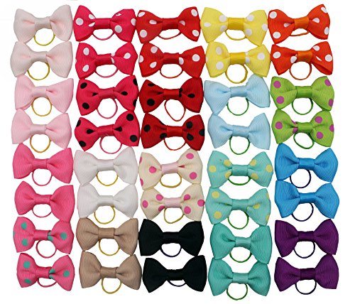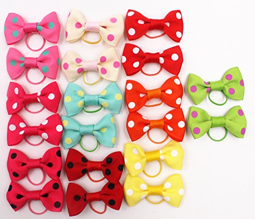 -. Title : CellElection 40pcs/20pairs Small Dog Hair Bows Topknot Classic Polka Dots Small Bowknot with Rubber Bands Pet Grooming Products Mix Colors Pet Hair Bows Dog Hair Accessories