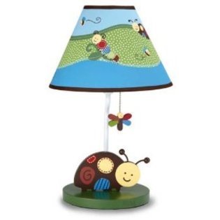 NoJo critter babies lamp and matching shade. Features a Ladybug lamp base with printed shade and dragon fly toggle pull. Lamp is UL listed and includes the light bulb. This will brighten your little ones nursery. Coordinates with a full line of Infant bedding. Colors are brown, red, green and blue. No cleaning required.Feature