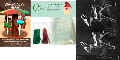 Cybrtrayd Reindeer Chocolate Mold with Chocolatier's Bundle of 50 Cello Bags, 25 Green and 25 Red Twist Ties and Chocolatier's Guide