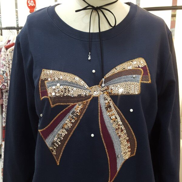화려한 스팽글장식이 화려하고 진주와 자수장식이 세련된 기본 티셔츠로 가디건이나 코트안에 포인트로 착용하기 좋은제품입니다.