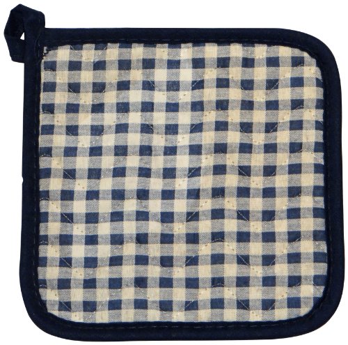 Phoenix 7-Inch Gingham Blue Potholder with Silicone One Side, Package of 4