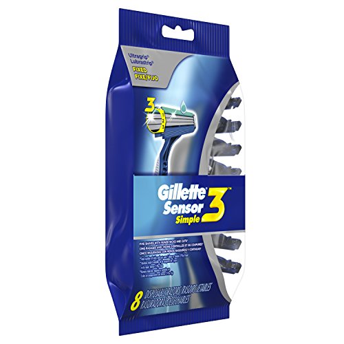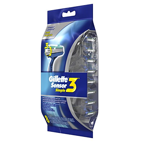 Gillette Sensor3 Simple Men's Disposable Razors, 8 Count, Mens Razors / Blades