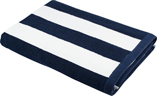 Phaselis Luxury 100-percent Turkish Combed Cotton Oversize Cabana Stripe Beach Towel, 35" x 70", 550G, Navy Blue