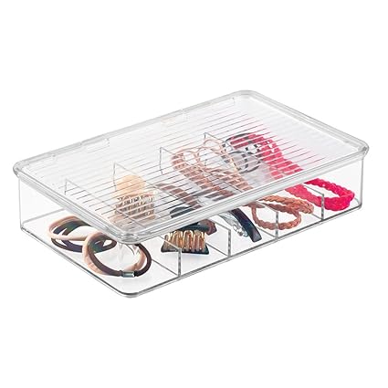 [Product Information]- Hair care and accessory storage box with hinged lid and 5 compartments