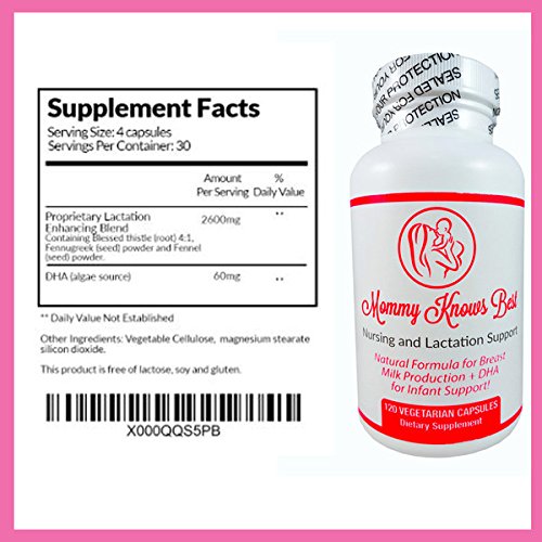 -. Feature : NATURAL LACTATION SUPPORT THAT WORKS: A safe and effective herbal lactation aid designed to quickly increase breast milk for breastfeeding mothers / QUICKLY PROMOTES NATURAL MILK PRODUCTION with Fenugreek Seed, Blessed Thistle Herb, Fennel Seeds plus DHA for healthy brain development / Custom formulated using only the highest quality sources of herbs, Mommy Knows Best lactating pills will help you to induce lactation in your body, quickly and naturally. / Mommy Knows Best Special Lactation pills contains a whopping 2600 mg of tried and tested ingredients (in the proper amounts) that have been proven to work time and time again. / Manufactured in Florida, USA each batch is met with rigorous safety standards for superior quality. This product does not contain any milk, dairy, egg, tree nuts, peanuts, wheat, or gluten