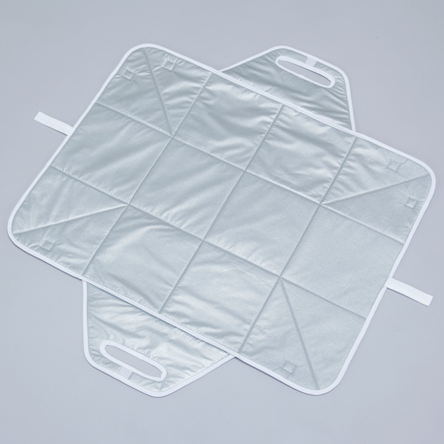 3層構造+アルミコーティング加工で熱効率にも優れ、素早くきれいな仕上がりに。幅67cmの長方形でシャツ類など幅のあるもののアイロンがけにも便利です。収納時折りたたむ目安になるミシン目付き。