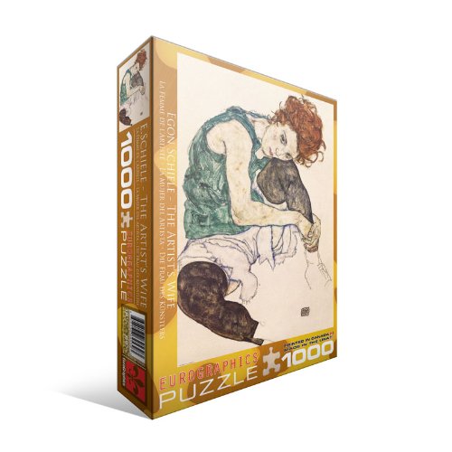 -. Binding : Toy -. Brand : EuroGraphics -. Department : Schiele -. EAN : 0628136645393 -. Feature : 1000-Piece Puzzle / Box size: 10" x 14" x 2.37" / Finished Puzzle Size: 19.25" x 26.5" / Manufactured using the highest quality blue board / Made in the USA / Made in the United States / 100% recyclable, safe, non-toxic, and printed with vegetable-based inks and Certified by the Forest Stewardship Council / Printed in Canada, made in the United States / Puzzle pieces are manufactured using the highest quality 0.07" blueboard, offering an exact fit without fraying over time and use / Assembling puzzles improves fine motor skills and picture recognition abilities - promotes both cooperative and independent play -. IsAdultProduct : 0 -. ItemPartNumber : EG60004539 -. Label : Eurographics - Toys -. Manufacturer : Eurographics - Toys -. Model : 6000-4539 -. MPN : EG60004539 -. NumberOfItems : 1 -. PackageQuantity : 1 -. PartNumber : EG60004539 -. ProductGroup : Toy -. ProductTypeName : TOYS_AND_GAMES -. Publisher : Eurographics - Toys -. Studio : Eurographics - Toys -. Title : EuroGraphics The Artist's Wife by Egon Schiele Puzzle (1000-Piece) -. UPC : 628136645393 -. Warranty : No Warranty