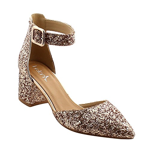 Product DescriptionBetani Women's adjustable ankle strap Mary Jane sandal features pointed toe with self-fabric 2" block heel. Imported.0