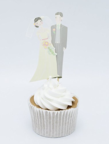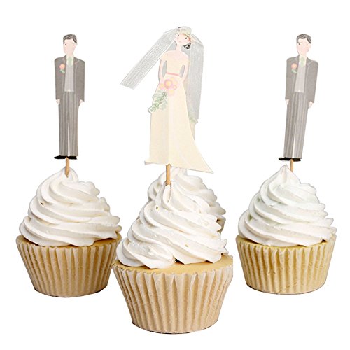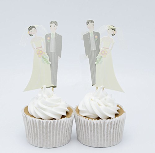 Betop House Set of 24 Pieces Bride and Bridegroom Decorative Cupcake Topper for Bridal Shower Wedding Ceremony and Bachelor Party