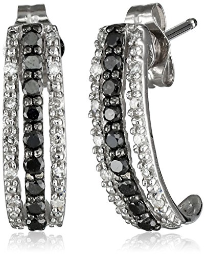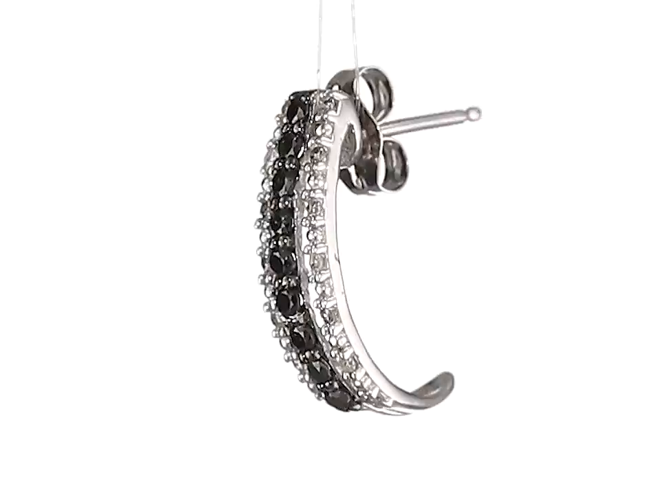 14k White Gold Black and White Diamond Hoop Earrings