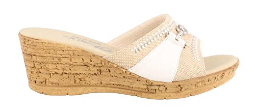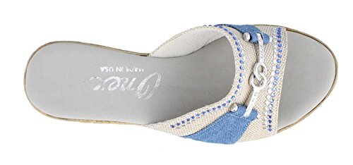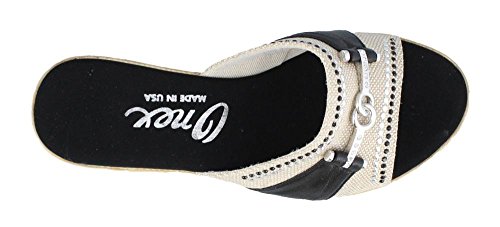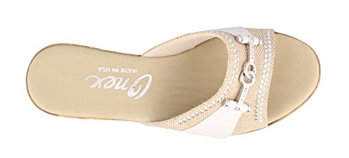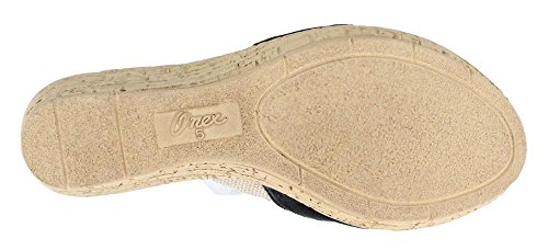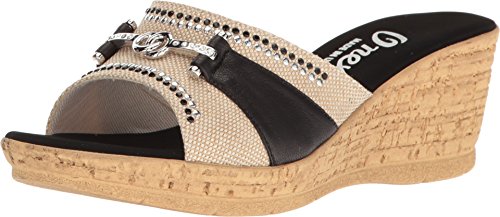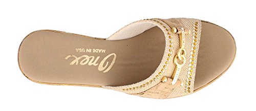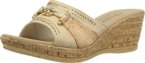 Studio : ONEX Publisher : ONEX Binding : Apparel Product Description It is recommended that you order 1/2 to 1 full size larger than your usual size. Add dazzling touches to your look with the luxurious Lynette wedge sandal by Onex®. Leather and textile upper with decorative rhinestone and ornament accents. Easy slip-on style. Memory Foam cushioned footbed. Synthetic outsole. Measurements: Heel Height: 2 1?4 in Weight: 7 oz Platform Height: 3?4 in Product measurements were taken using size 9, width M. Please note that measurements may vary by size. 0