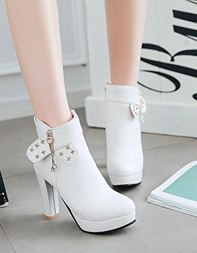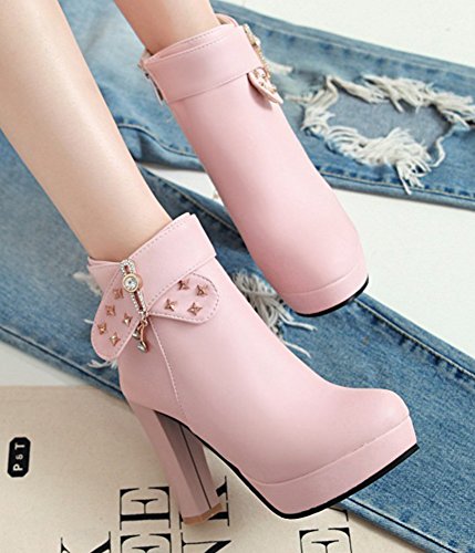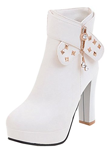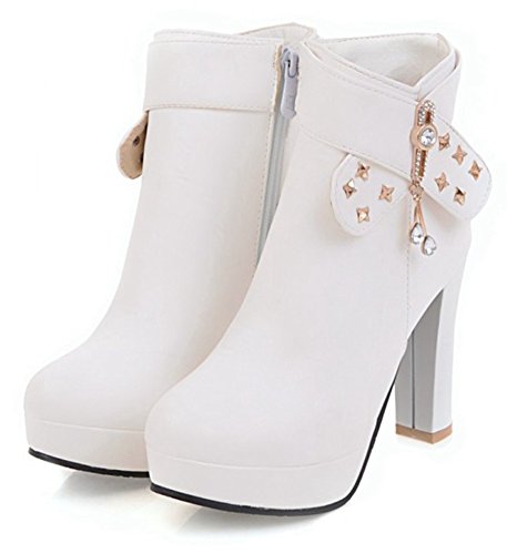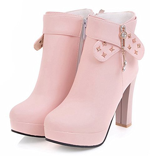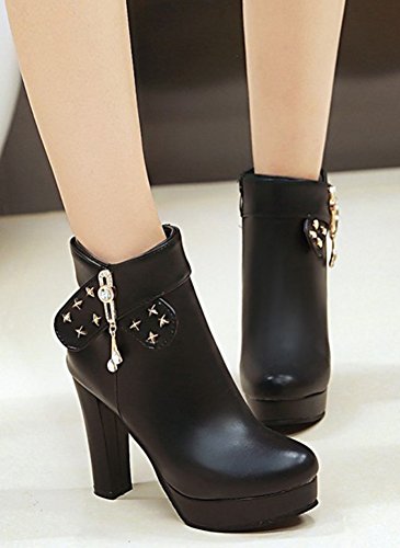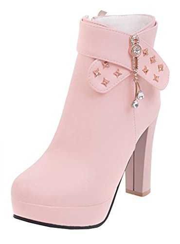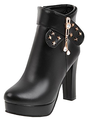 Binding : Apparel Product Description Do you need a pair of boots is of both warmth and fashion? Then this pair of boots is a great choice. The heel is 4.1 inches. You will look slender in their high heels. You will not feel too tired when walking with them. This pair of shoes features side zipper closure which is easy for on and off. The upper is waterproof. You will stay warm with them. The rivets and rhinestones style can make you look special. The sole is made of good rubber. You will feel comfortable in their soft bottom. The sole is also slip-resistant. They are of high quality and durable. Why not order it today? 0
