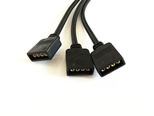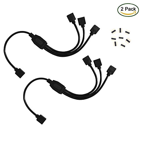 2 pcs black 4 Pins LED Splitter Cable LED Strip Connector 3 Way Splitter Y Splitter for One to Three RGB 5050 3528 LED Light Strips with 8x Male 4 Pin Plugs -30cm/12inch Long (1 to 3 Splitter Cable)