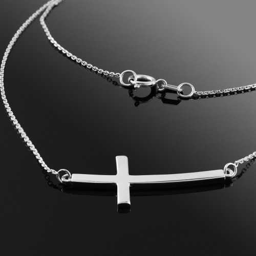 stylish 925 sterling silver sideways cross necklace with a curved Catholic/Christian cross pendant