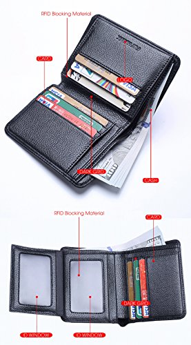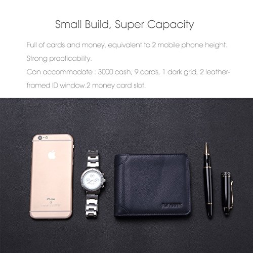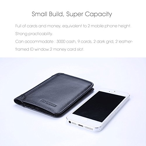 -. Feature : ITALIAN MENS GENUINE COWHIDE LEATHER MENS WALLET?rfid mens credit card wallet Gift packaging, the best gift of choice.Design is USA,Tough stitching. HandMade mens wallets for men better with age. / RFID BLOCKING MENS WALLET FOR TESTED & APPROVED BY INDEPENDENT LAB TESTS?Our silm men wallets for men rfid blocking bifold leather wallets have been tested for 13.56 MHz Frequency in which our credit cards, debit cards, driver license and ID cards operate. PLEASE BE NOTED THAT the signal of some ID badge, access cards and hotel room cards which operates in 80 KHz, can not be blocked by this leather men wallet. / ENHANCES PERSONAL safety wallets for men? We mens wallet RFID leverage top technology to block RFID signals used to electronically scan your wallet as someone passes by unnoticed. This keeps your vital information in driver license, debit cards and credit cards from being stolen.So,This credit card wallet Can Protecting your card is safe. / PREMIUM FUNCTIONALITY?Our RFID mens wallet not only offers security, it's also very functional. Perfect Front Pocket wallet to carry some money ID and a few cards,Top quality!Dimensions = 4.7" 3.7" 0.4".Double bill compartment, 8 credit card slots, and 2 leather-framed ID window. / SATISFACTION GUARANTEE?We know you'll love our RFID Blocking Leather Wallet for Mens wallets, that's why if you aren't 100% satisfied we will provide you with a refund or a free replacement - which ever you prefer. Buy more for your friends and family.Can be used as a for boyfriend gifts