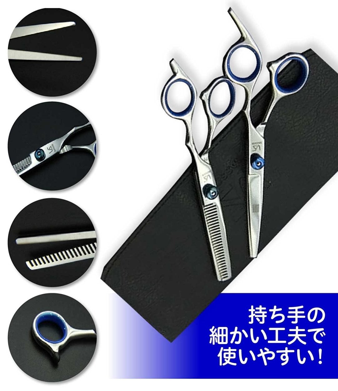散髪 ヘアカット すきばさみ セット ハサミ シザー 左右 プロ 初心者 美容師 理容師 セルフカット カットはさみ ケース付 2color ブルー