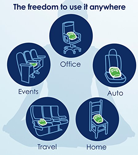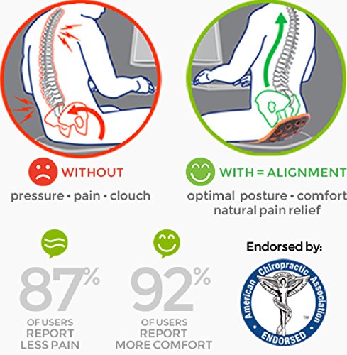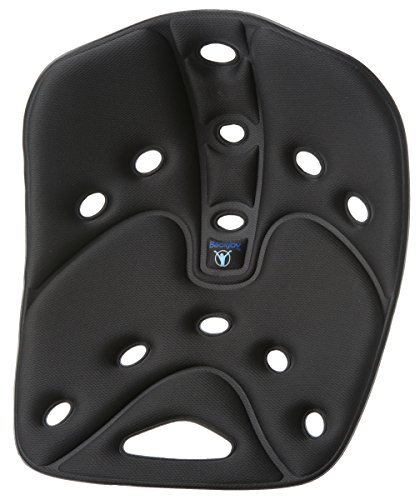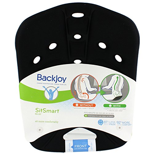 Studio : BackJoy Publisher : BackJoy Binding : Health and Beauty Product Description Natural, safe and effective back pain relief Patented, easy-to-use design creates optimal posture maximum comfort for longer periods of sitting Works in any seat - office, car, home - or anywhere you sit Tilts the pelvis upright to engage core muscles Cups gluteus muscles to prevent muscle tightening and strain Floats pelvis above sitting surface for total comfort Small, lightweight, and easy to use Padding is made of copolymer polypropylene plastic, with 100% open cell urethane foam fill and brushed polyester fiber covering Measures 16" H x 13" W x 4" D Clean with upholstery cleaner 0
