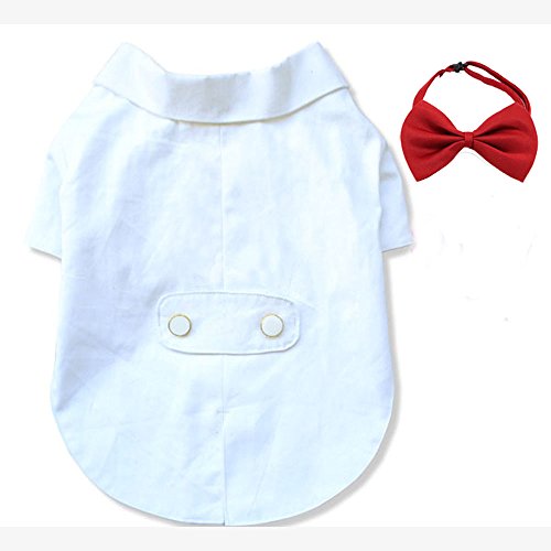 -. Title : Male Dog Wedding Clothes Formal Shirt with Red Bowtie,Thick White Dog Tuxedo Costume for Pet Party Supplies