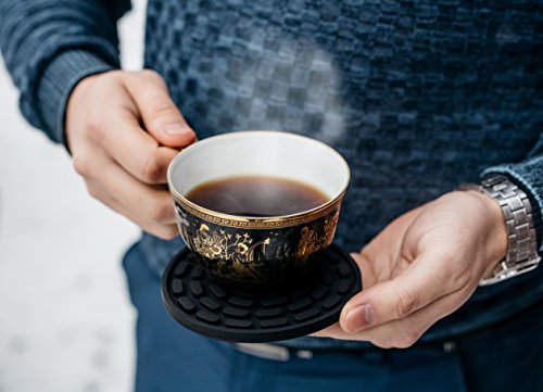 - •SUITS ALL OF YOUR MUGS WITHOUT HASSLE: It’s quite normal to worry whether these coasters are going to match the size of your mugs- however, we reassure you that our products are conveniently constructed so as to fit all of your mugs, cups and glasses- no matter their size! The largest sized coaster of the market is here for you- now you can be sure that spillage is never going to happen!