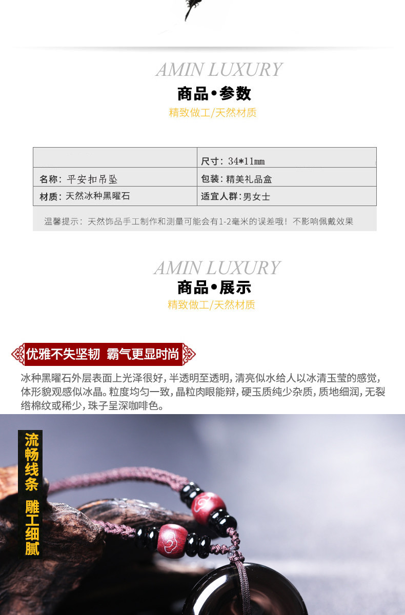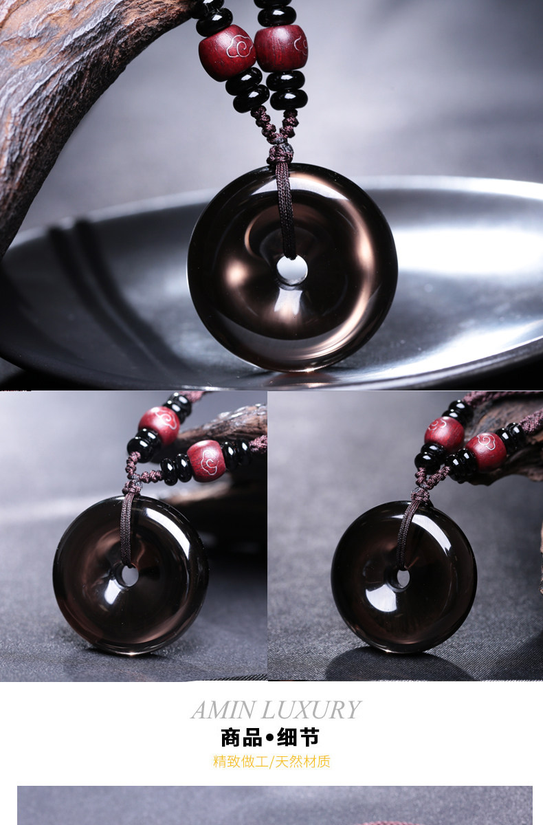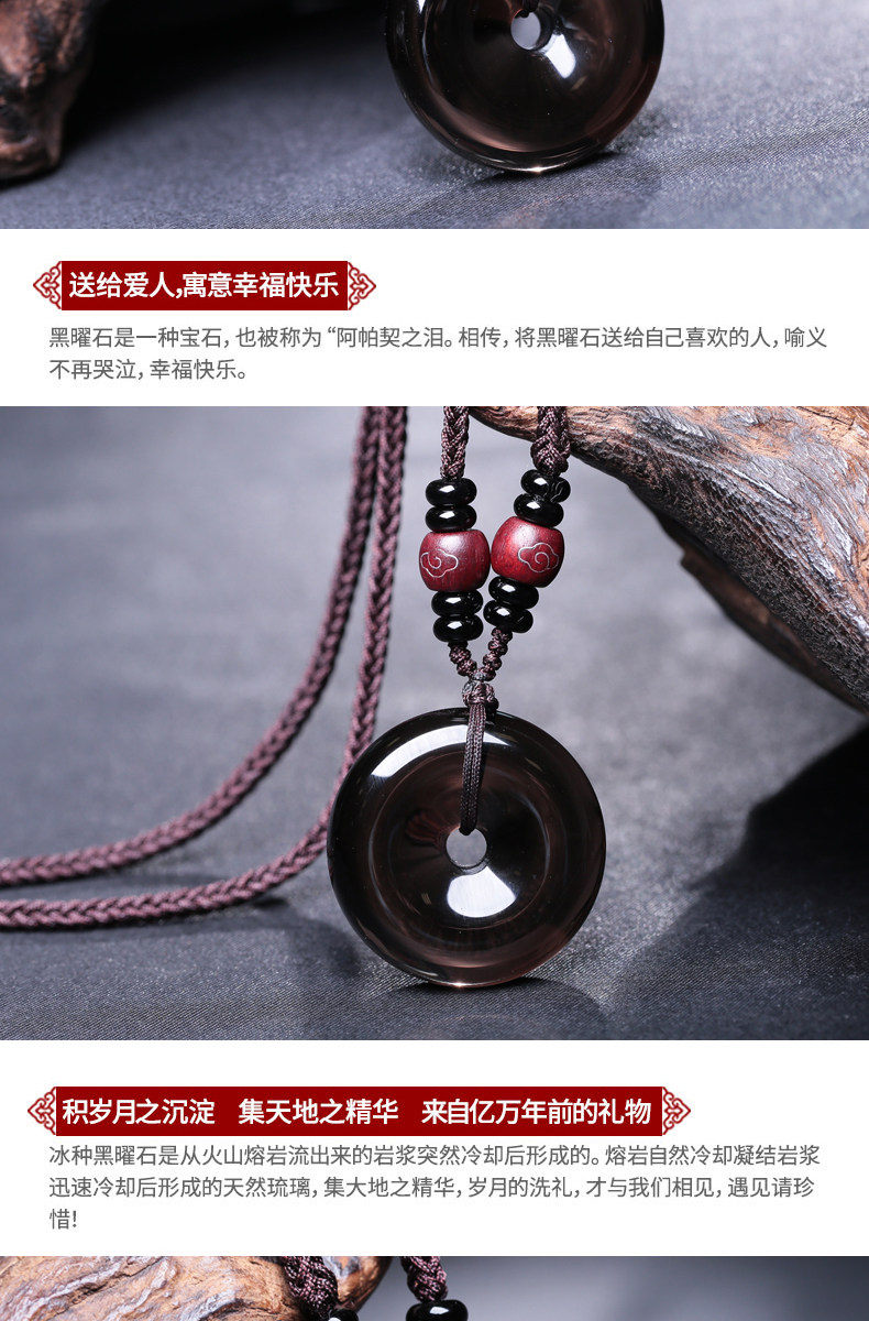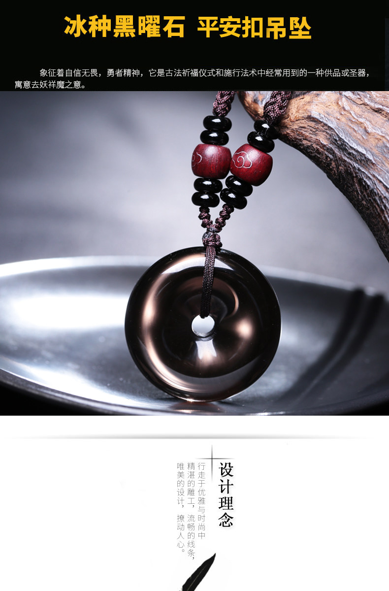 开光冰种黑曜石平安扣吊坠六芒星星空石灵摆占卜水晶饰品情侣项链
