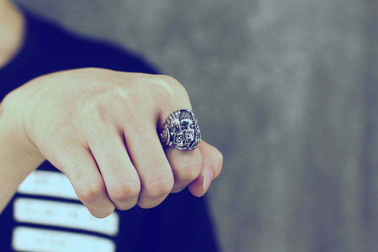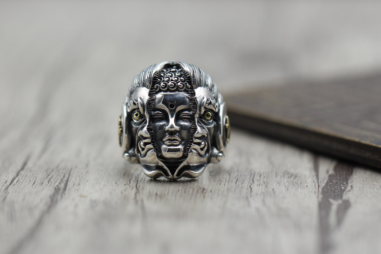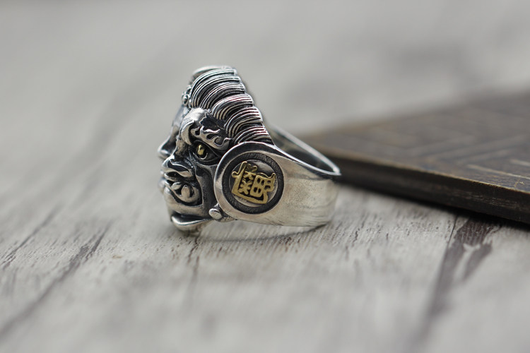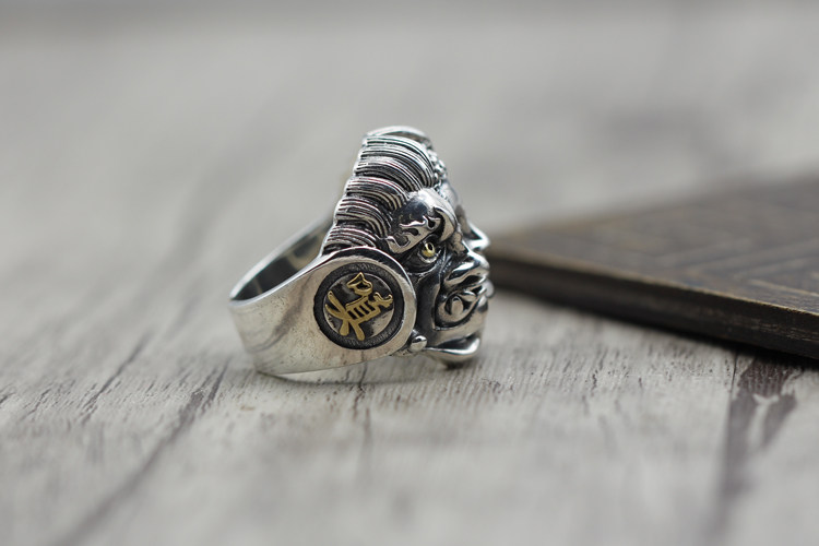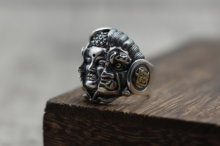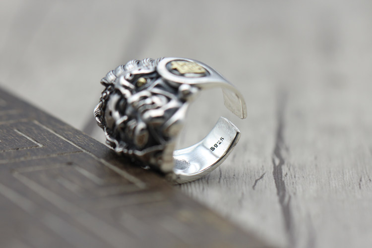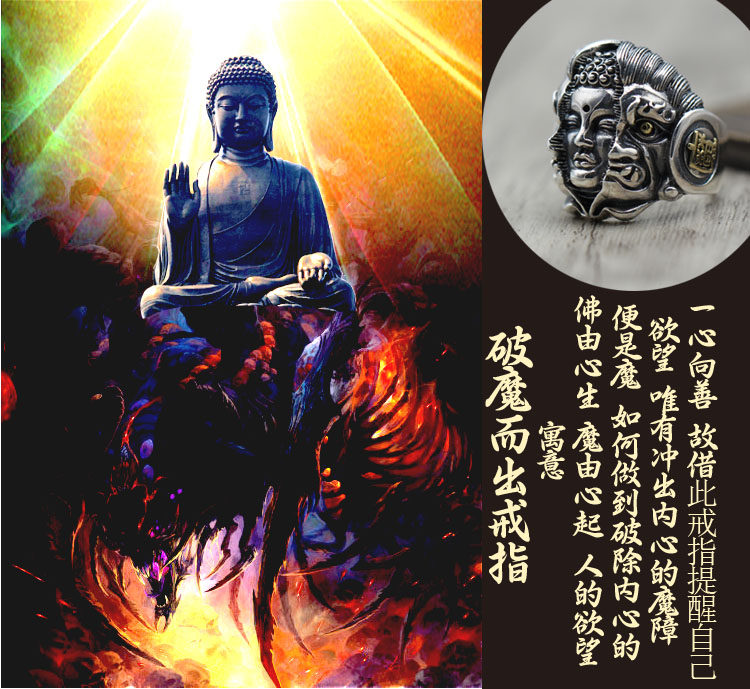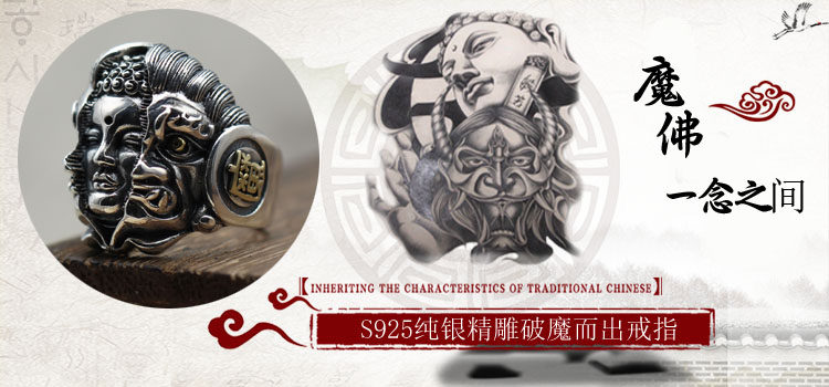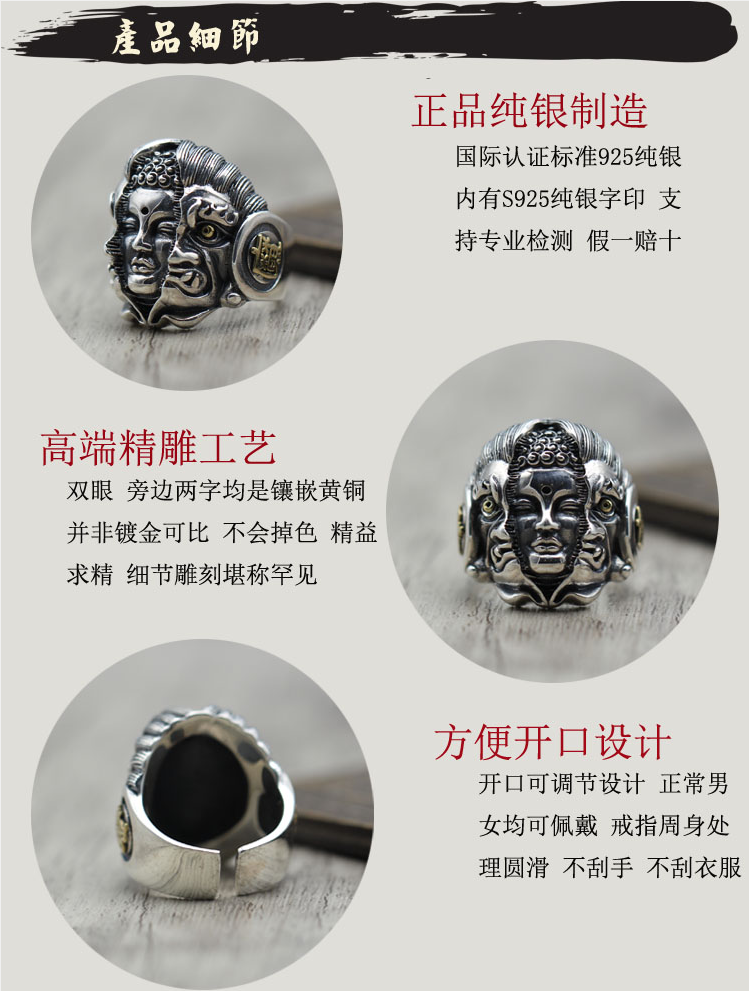 纯银潮人饰品复古霸气食指开口指环佛魔一念之间个性泰银男士戒指