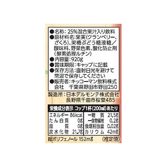 원본상품명: デルモンテ HEALTHY GARDEN クランベリ&ざくろ 920g