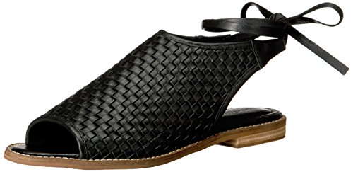 Product DescriptionPeep-toe woven leather flat sandal with adjustable ankle strap laces0