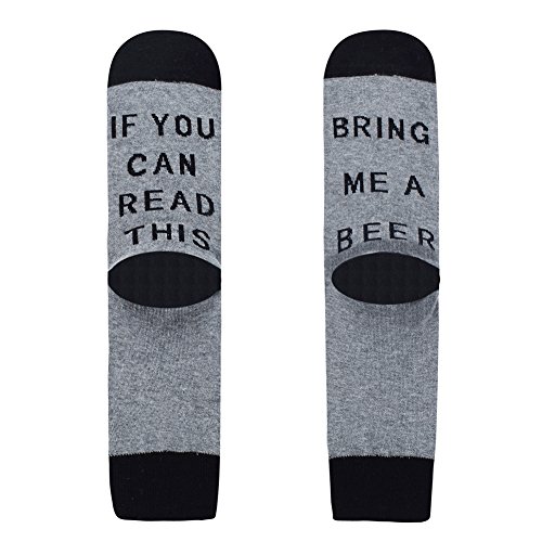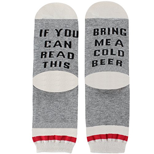 -. Feature : SEWN IN LETTERING, NOT P.R.INTED: All the words are stitched directly into the socks instead of an iron-on transfer, so it won't peel off. Novelty socks that will make your friends giggle, here you go! / COMFY MATERIAL: Made from combed cotton, soft, comfortable, stretchy and breathable. Smell free, moisture wicking, medium thickness, machine washable, hold up well in the laundry. / SIZE: One size for men or women.Suit for slippers, sandals, casual, athletic, dress or formal shoes. / FUN GIFT: IF YOU CAN READ THIS, (PLEASE) BRING ME A COLD BEER; Grey with black lettering, wear to work, on a date, or lounging around the house! Gifts for Bridesmaids, Groomsmen, Hostess or Housewarming ,Birthday Gift or Christmas Gift. / PACKAGE&100% SATISFACTION: 4 pairsof socks in plastic for choice. We offer 30 days money back and Prompt customer service.