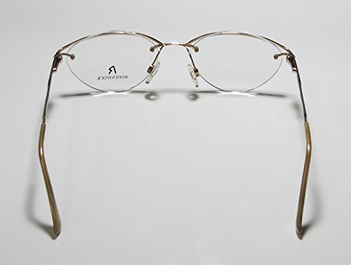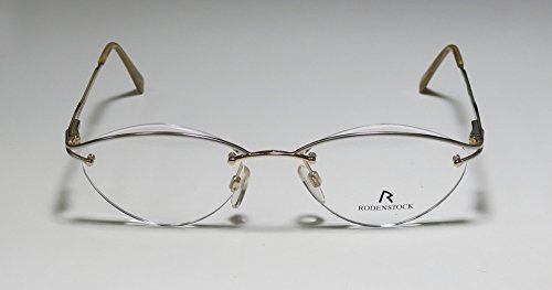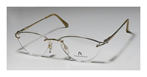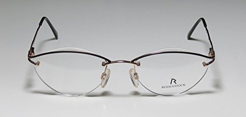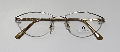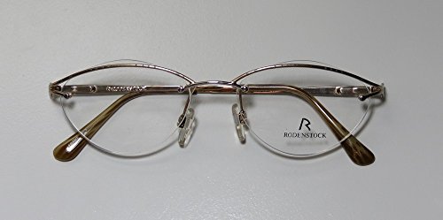 Brand: Rodenstock Style: R4202 Gender: womens Frame Type: half-rim Frame Material: metal Case: eleganzo The frame is fully rx-able and can be fitted with prescription and/or tinted lenses at most optical stores. Please note that factory demo lenses have a logo stamped on them in ink. These eyeglasses are made of corrosion resistant and strong metal. The frame has spring hinges. Spring hinge temples prevent you from stretching the fit of your glasses and ensure that they remain intact and not become loose or out of shape. Please keep in mind that original case is not included with this frame. However, we will include an Eleganzo hard case at no extra charge to keep your eyeglasses protected. These eyeglasses retail for $140.00 at upscale stores that carry designer frames. Save your money and get them here! The pictures cannot fully reflect the beauty of this piece of designer eyewear. These eyeglasses look even more elegant in real life. This is one of the most popular Rodenstock styles on the market right now. 0 |